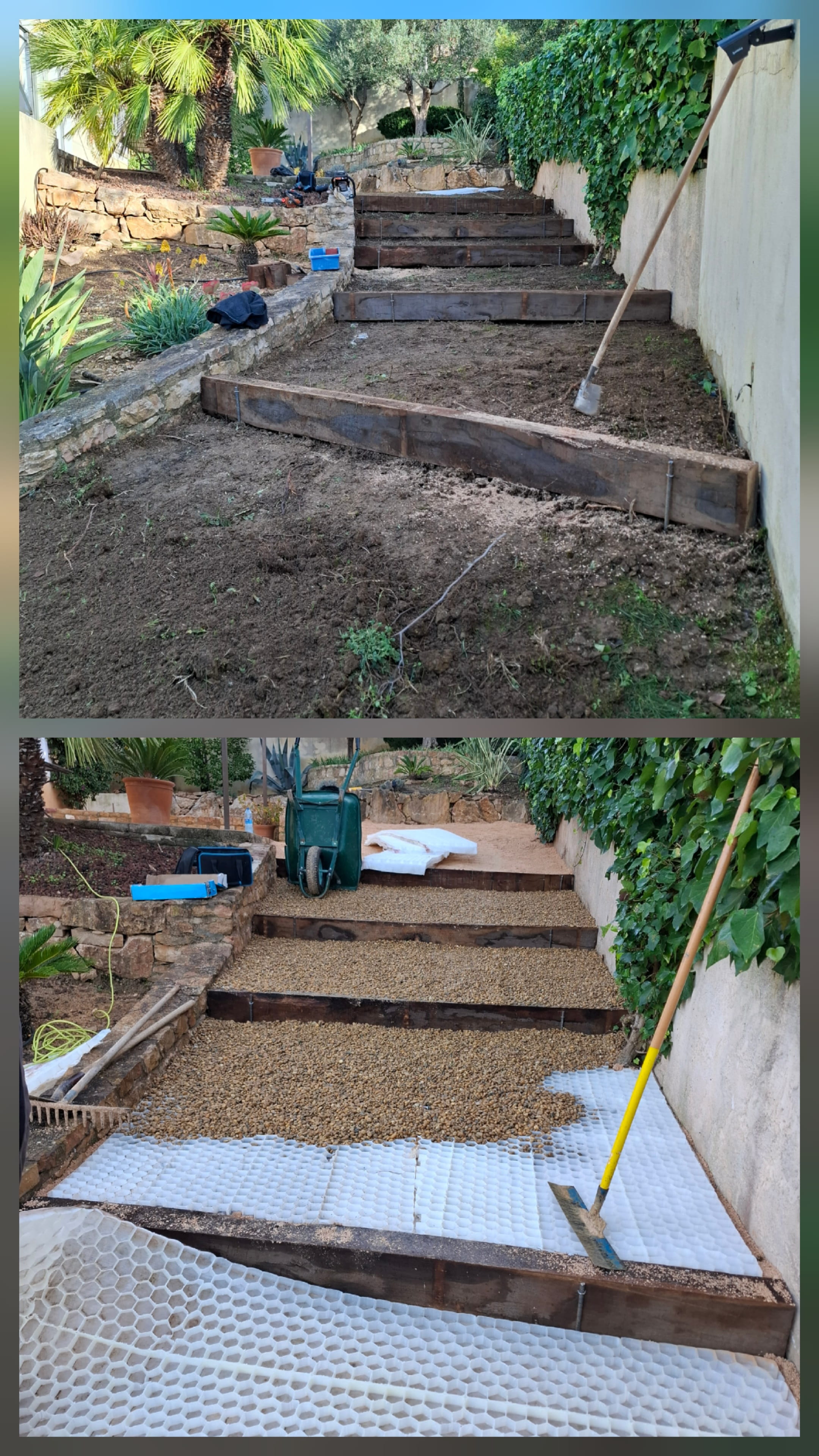 La création d’escaliers paysagers et d’allées,